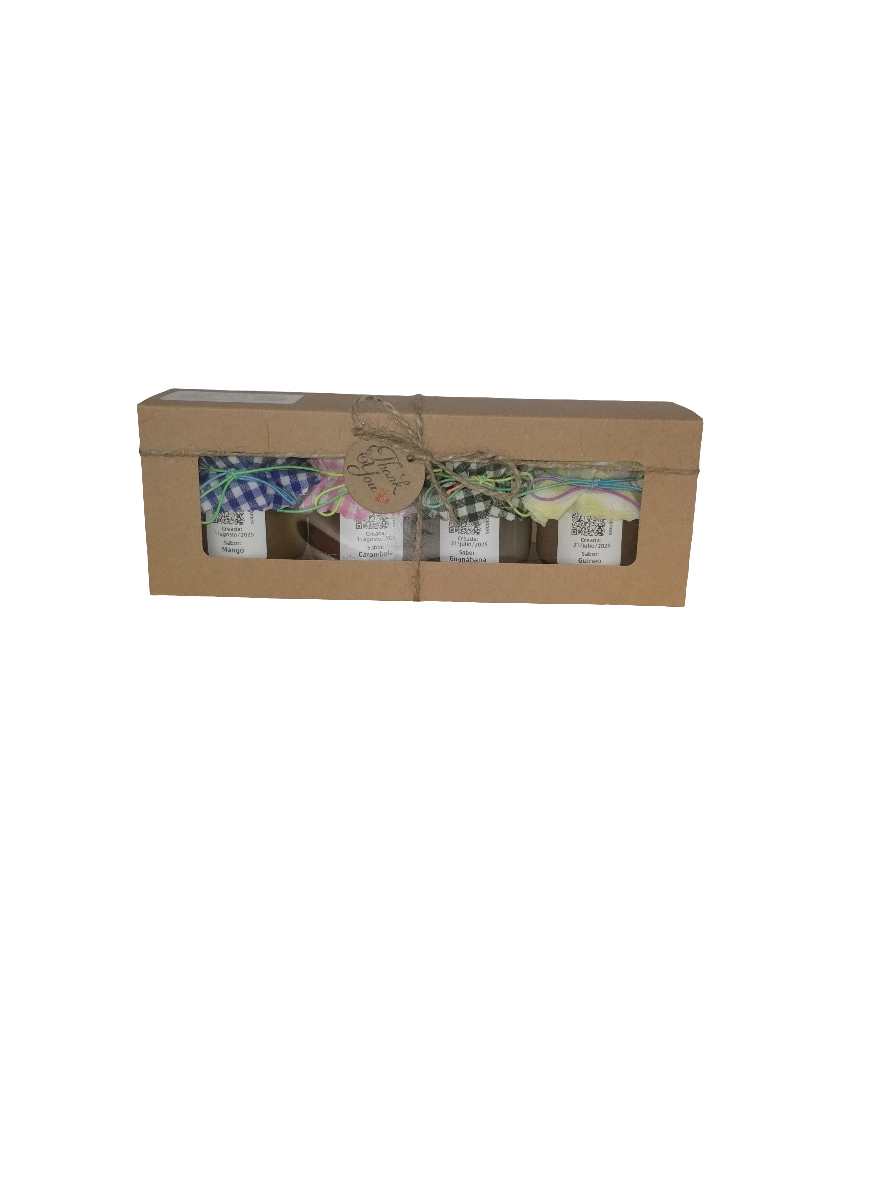 Caja de Regalo Del Palo Al Pote – Mermeladas Artesanales (Mango, Carambola, Guanabana, Guineo)